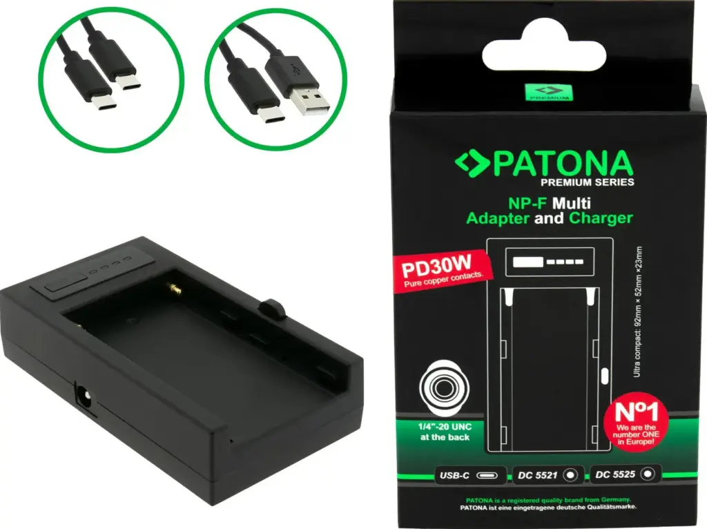 PREMIUM MULTI ADAPTER AND CHARGER FOR SONY NPF SERIES PD30W USBC DC5521/DC5525 DC8V/12V WITH 1/4 INCH THREAD