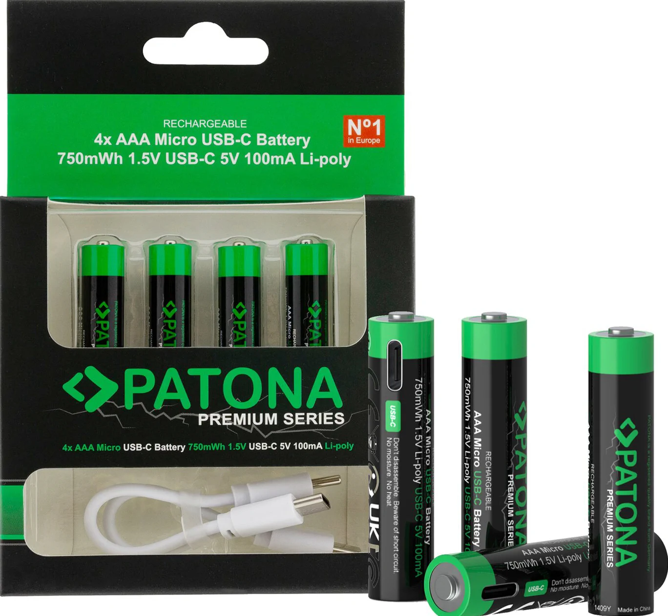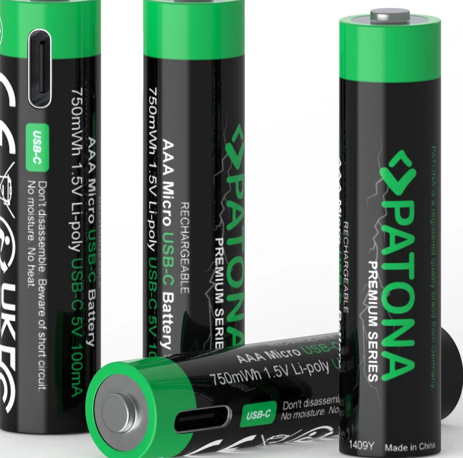 Le batterie ricaricabili PATONA Premium AAA-Micro USB-C offrono una longevità eccezionale e possono essere ricaricate oltre 1.000 volte, oltre a essere caratterizzate da un’autoscarica estremamente ridotta.