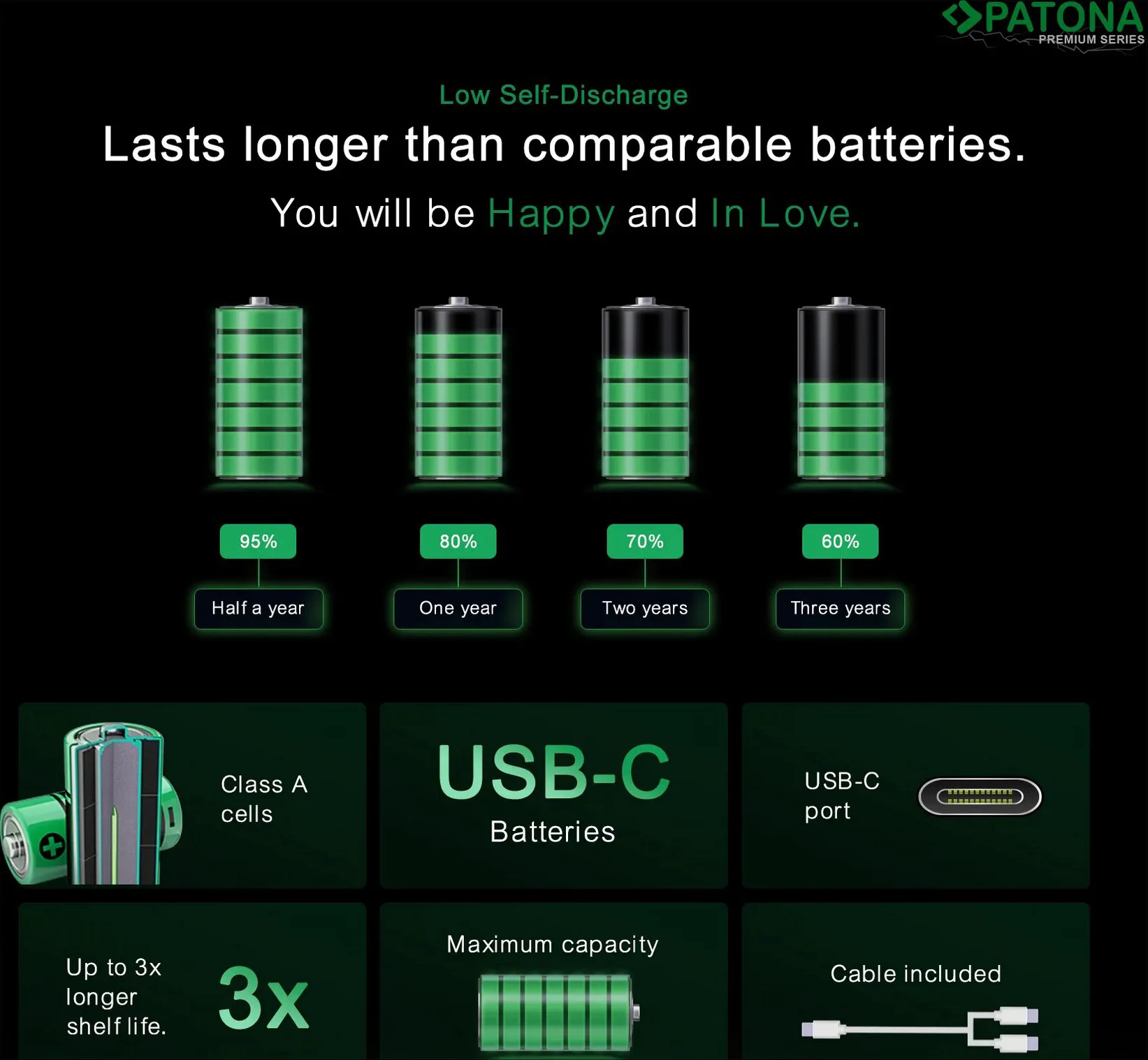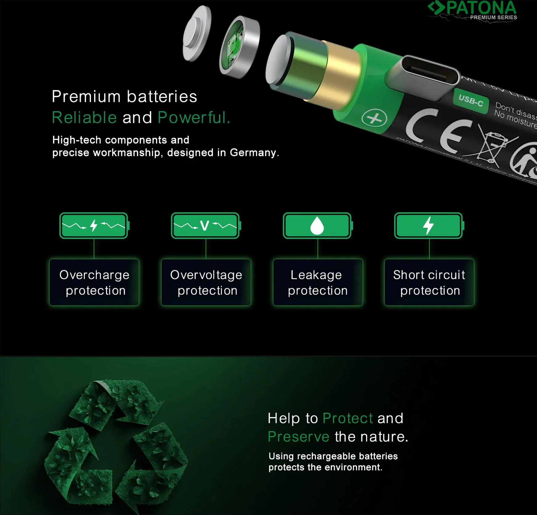 Con le nostre nuove batterie PATONA Premium LR20 Mono D USB-C, investi nella massima qualità e in una tecnologia sostenibile. Queste batterie di alta gamma colpiscono per la loro notevole capacità e la tensione stabile di 1,5 volt, che le rende una fonte di energia indispensabile per una vasta gamma di dispositivi. Che si tratti di radio, torce elettriche o giocattoli, le prestazioni superiori di queste batterie ti stupiranno.