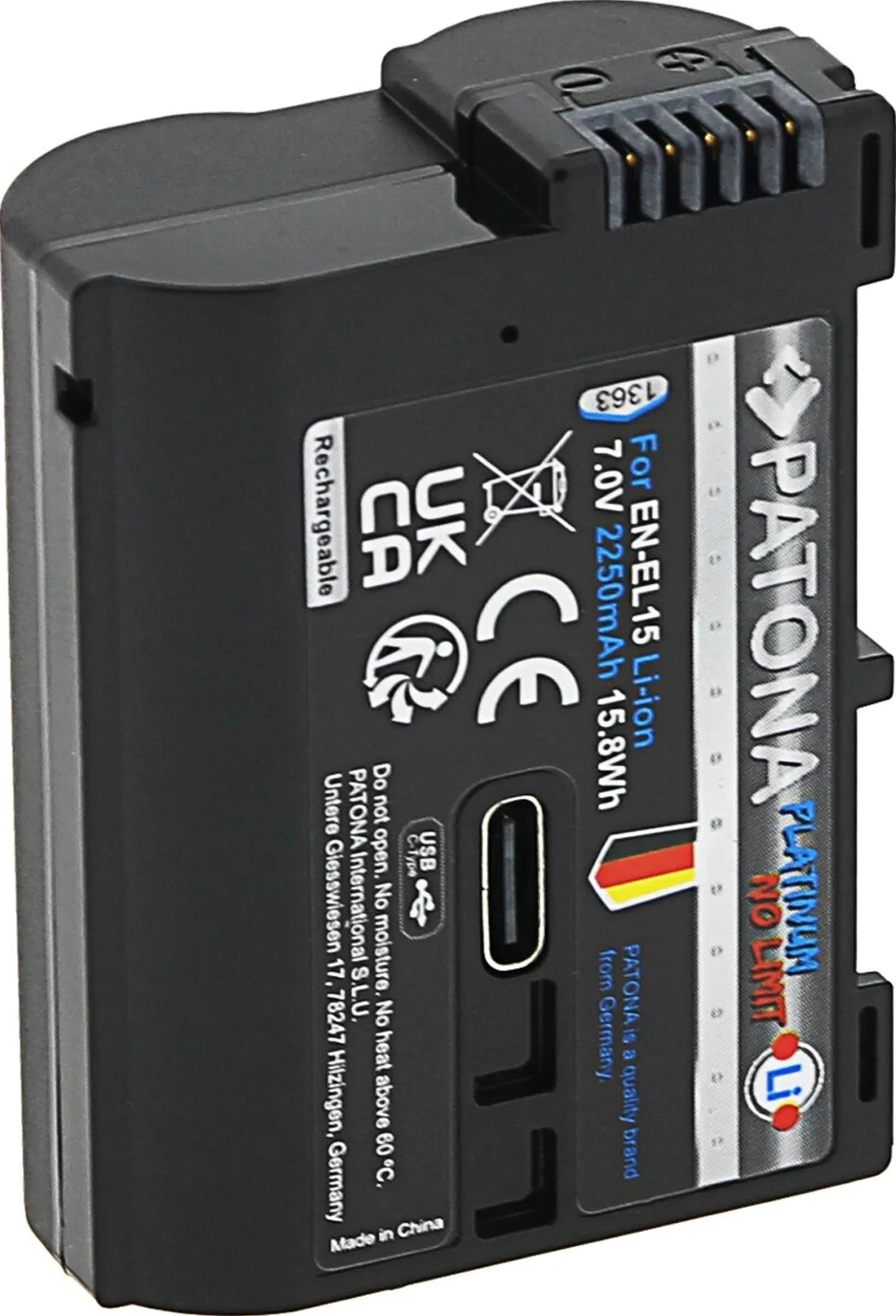 Batteria PATONA Platinum con ingresso USB-C per Nikon 1 V1 EN-EL15 EN-EL15B EN-EL15C ENEL 15 D7000 D800 D600 Z6 Z7