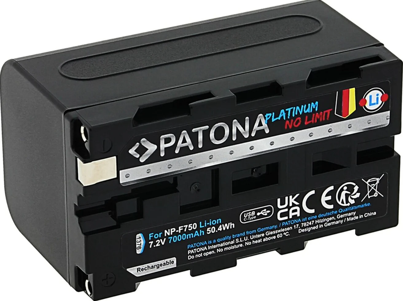 Batteria PATONA Platinum con ingresso USB-C per Sony NP-F750 F330 F530 F550 F930 F920