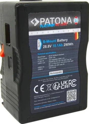 La batteria PATONA Platinum B-Mount stabilisce nuovi standard nell’alimentazione USB-C, soprattutto per l’uso professionale sui set cinematografici. Grazie alla capacità di erogare tensioni variabili di 5 V, 9 V, 12 V, 15 V fino a 20 V a 3 A costanti, questa batteria garantisce un’alimentazione costante e affidabile. La compatibilità con un’ampia gamma di protocolli di ricarica avanzati come BC1.2, PD2.0/3.0, QC2.0/3.0, FCP e SCP ne sottolinea la versatilità e le prestazioni. PATONA Platinum B-Mount è la scelta perfetta per gli utenti più esigenti che si affidano a un’ampia gamma di laptop compatibili con USB-C, tra cui MacBook Air, MacBook Pro, Huawei MateBook, ThinkPad, HP, ASUS, Dell e molti altri modelli. Non esiste una soluzione migliore per l’alimentazione mobile.