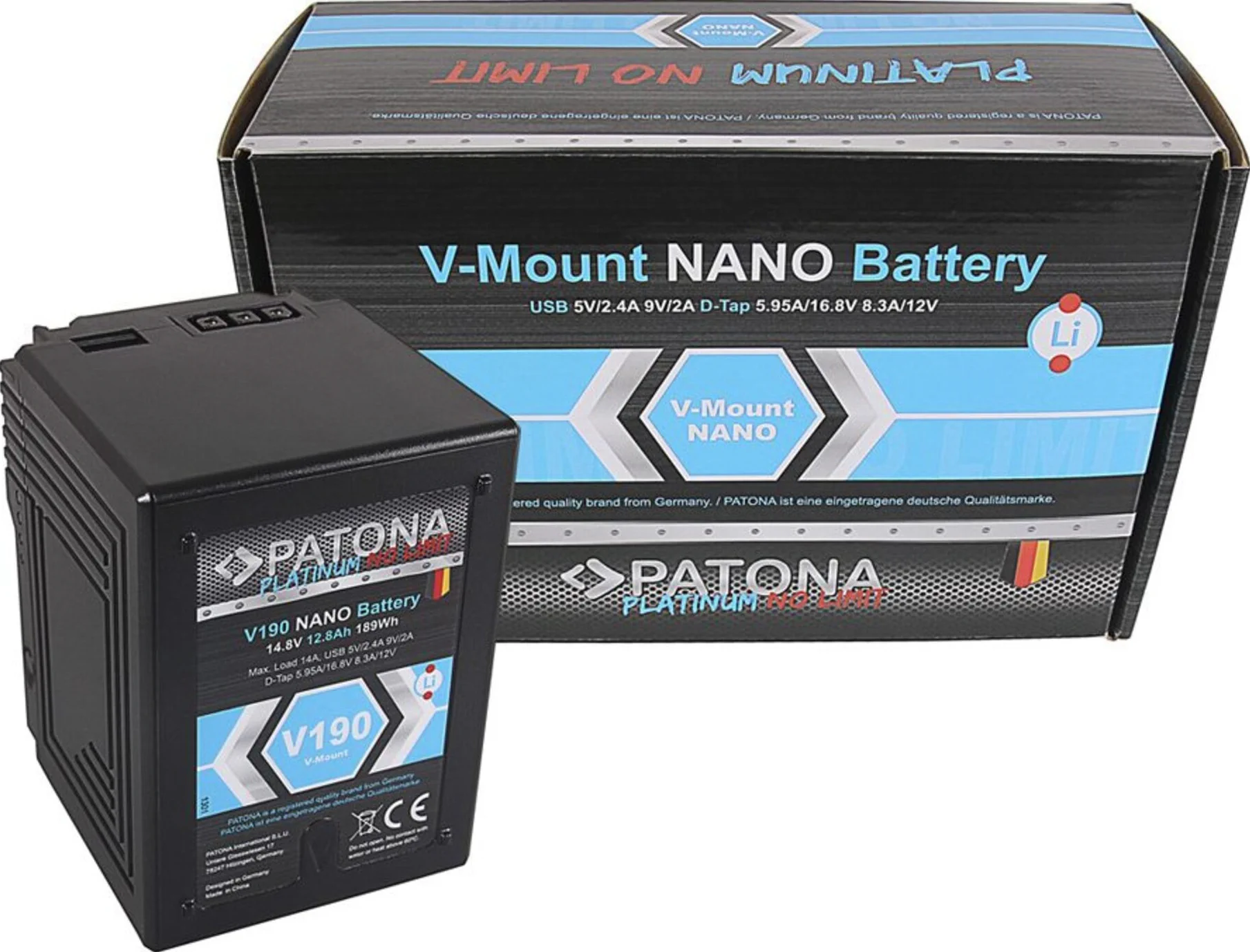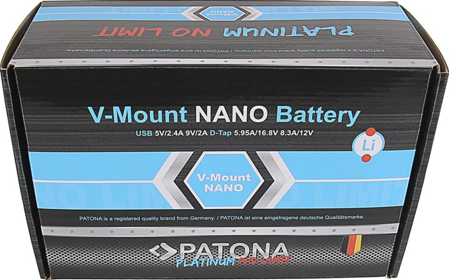 Le batterie PATONA V-Mount Platinum Nano sono dotate della più recente tecnologia cellulare e sono state appositamente progettate per gestire e mantenere un elevato consumo energetico. I circuiti di protezione monitorano l’equilibrio, la temperatura e il sovraccarico delle celle per garantire un funzionamento sicuro e corretto. Rispetto alle normali batterie V-Mount, le nuove batterie PATONA NANO V-Mount hanno un design più piccolo di circa il 30% con dati di prestazioni più elevate. Un display a LED a 4 stadi mostra la batteria rimanente in qualsiasi momento. L’uscita P-Tap / D-Tap può essere utilizzata per lampade e molti altri dispositivi esterni. Inoltre, l’uscita USB può essere utilizzata anche per caricare smartphone e tablet, ad esempio.