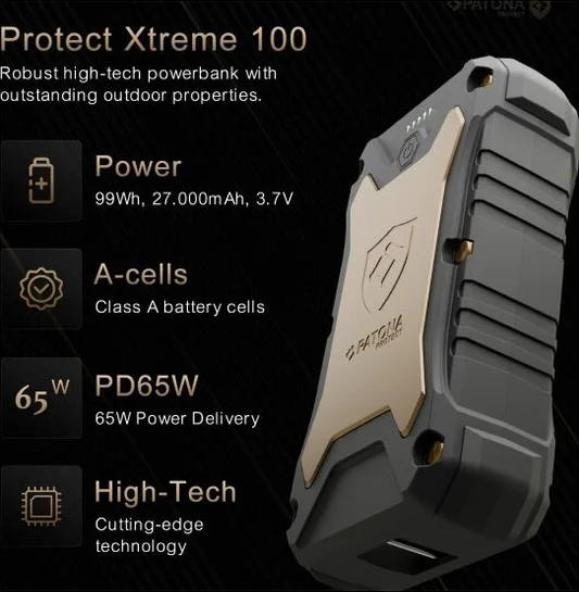 Capacità: Ha una capacità di 99,9 Wh (27.000 mAh) e celle della batteria al litio e poli di lunga durata.