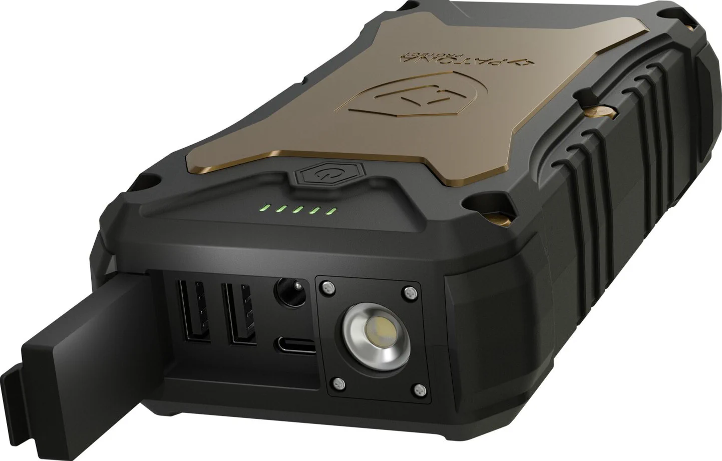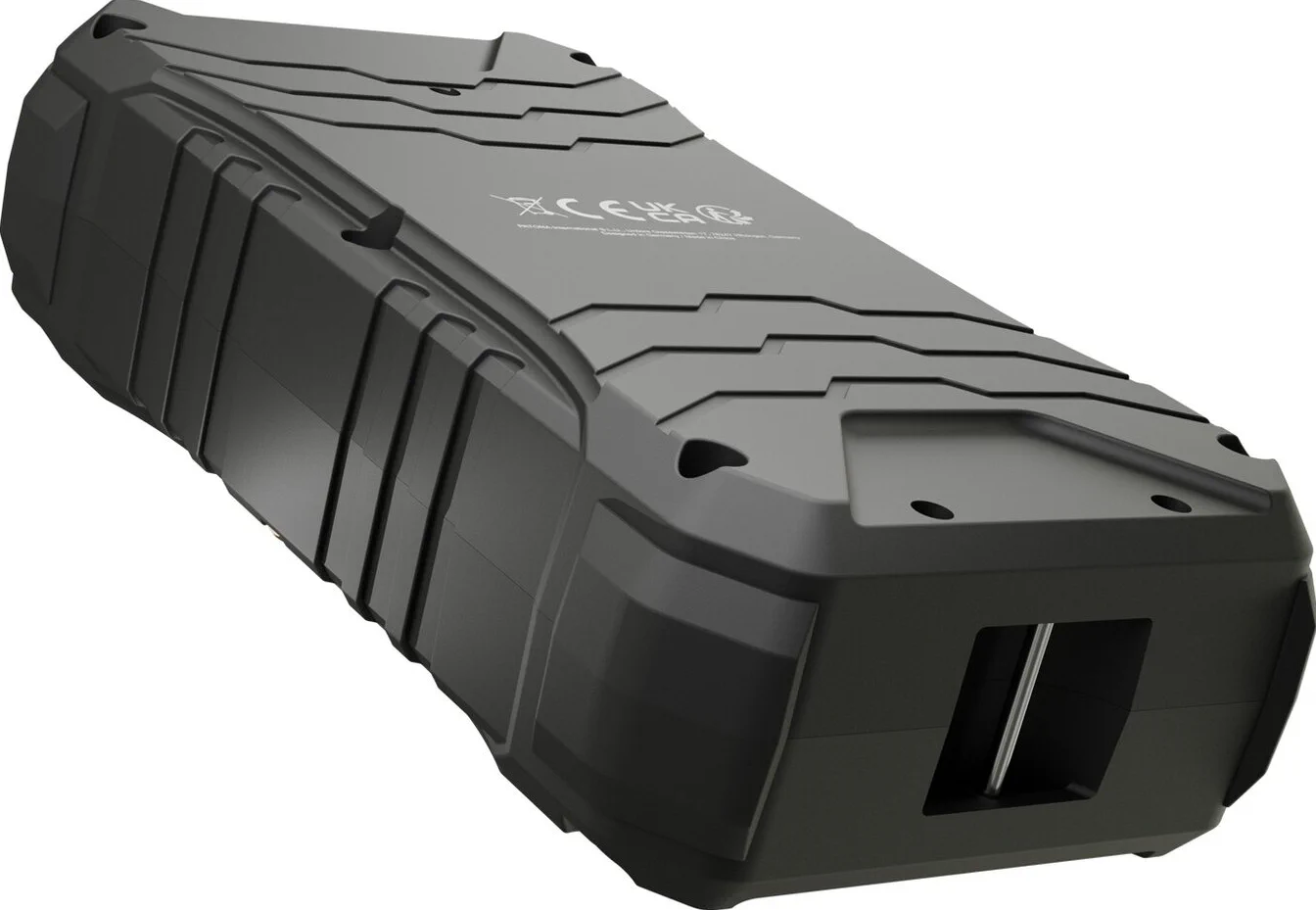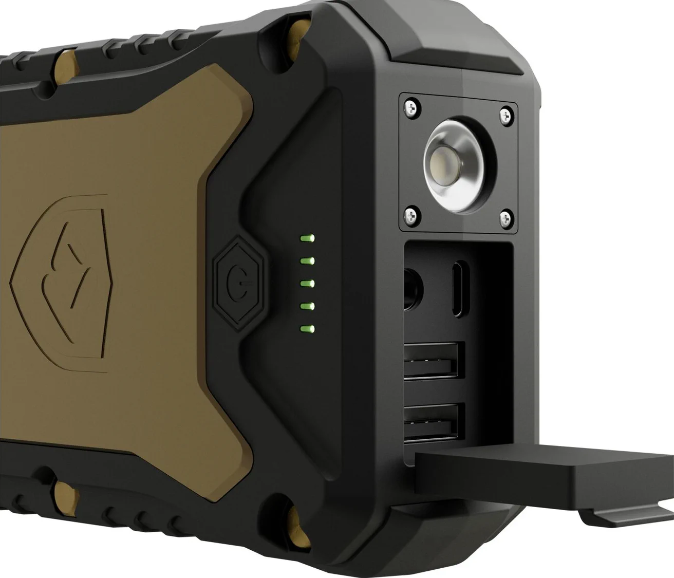 Attrazioni: Il powerbank si ricarica con lo standard PD65W e ha un alloggiamento IP66 impermeabile e robusto con ammortizzatori. Offre anche una funzione di torcia a LED e un gancio per appendere per un facile trasporto.