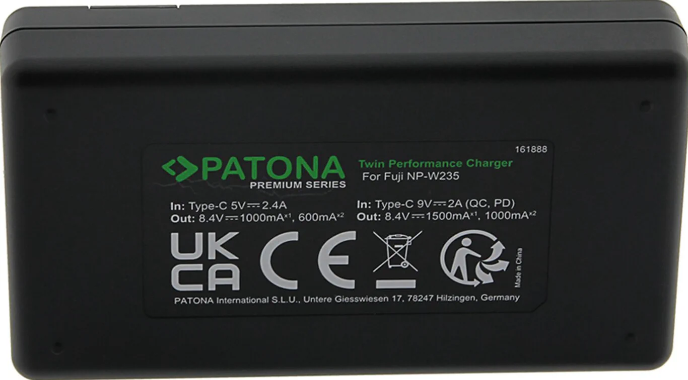 PATONA Premium Twin Performance PD Charger per Fuji NP-W235 Fujifilm X-T4 XT4 incl. cavo USB-C