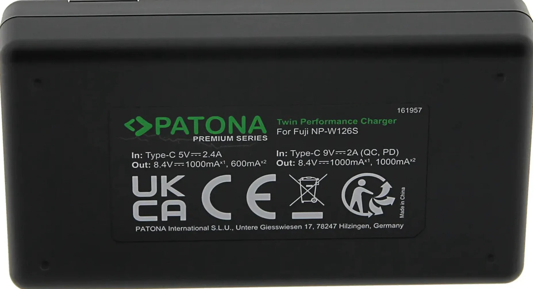 Il caricabatterie è collegato alla fonte di alimentazione tramite porta USB-C. Si consiglia l’adattatore PATONA Premium PD 20W (vedere la scheda in basso “Accessori”). Si prega di notare che la velocità di ricarica completa si ottiene solo con un caricabatterie PD da 20W.