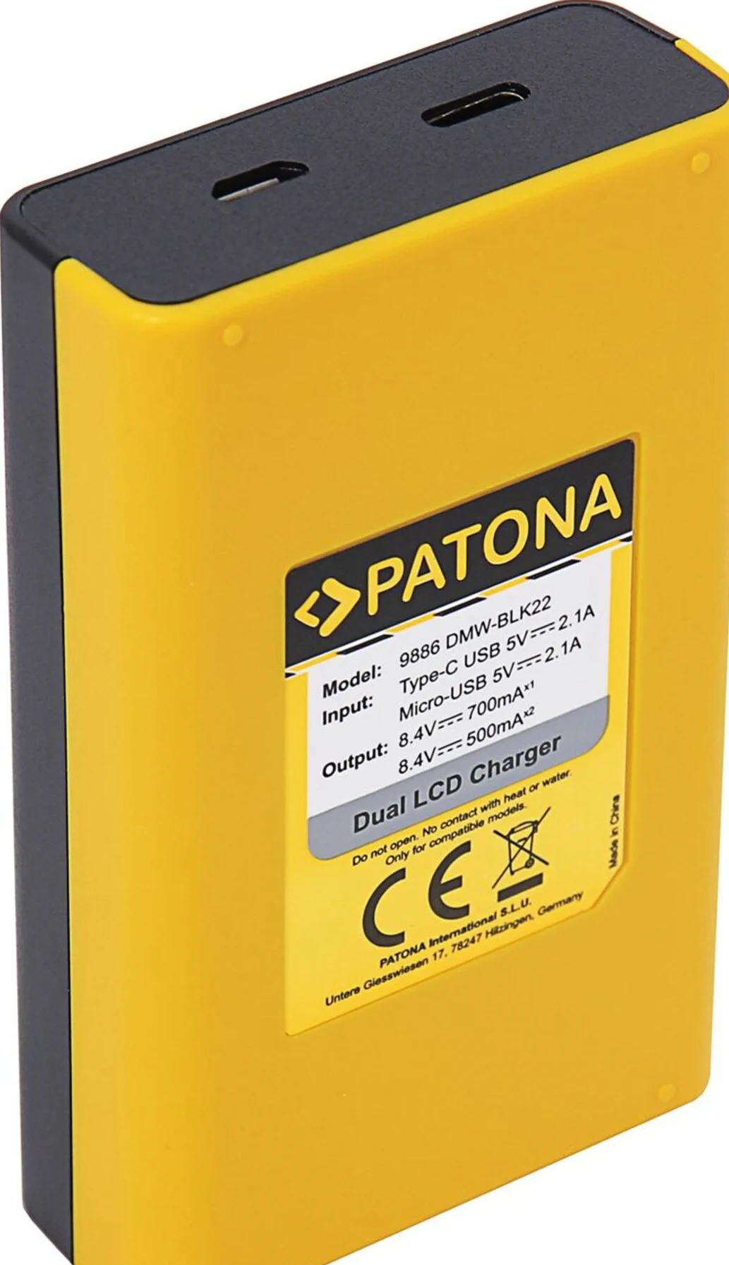 Caricatore USB doppio LCD PATONA f. Panasonic DMW-BLK22 DC-S5 G9 GH5 GH5S